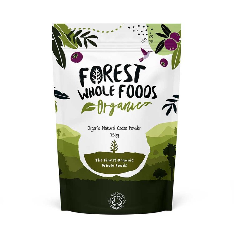 Experience the purest form of chocolate with Forest Wholefoods Organic Natural Cacao Powder. Ground from carefully roasted cacao nibs, this unalkalised (non-Dutched) cacao powder preserves the natural flavours, offering a rich, roasted taste that’s perfect for adding a deep, chocolatey touch to cakes, bakes, and homemade treats. Referred to as the ‘food of the gods,’ cacao is packed with over 300 unique compounds, including flavonoids—antioxidants that support your body’s health. Unlike regular chocolate options, which often contain milk, sugar, and additives, this raw cacao powder is the ideal base for wholesome, natural chocolate creations. Rich in selenium to support thyroid and immune system function, and packed with magnesium to combat tiredness and fatigue, it’s the perfect excuse to indulge in delicious cacao-based treats, naturally.