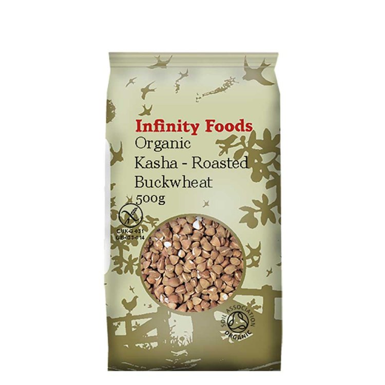Infinity Foods Organic Kasha is a rich, nutty roasted buckwheat that’s naturally gluten-free and full of flavour. With its hearty texture and earthy taste, it’s perfect for warming porridge, wholesome salads, or as a delicious side dish. Quick to cook and packed with natural goodness, it’s a simple, organic way to add depth and nutrition to your meals.