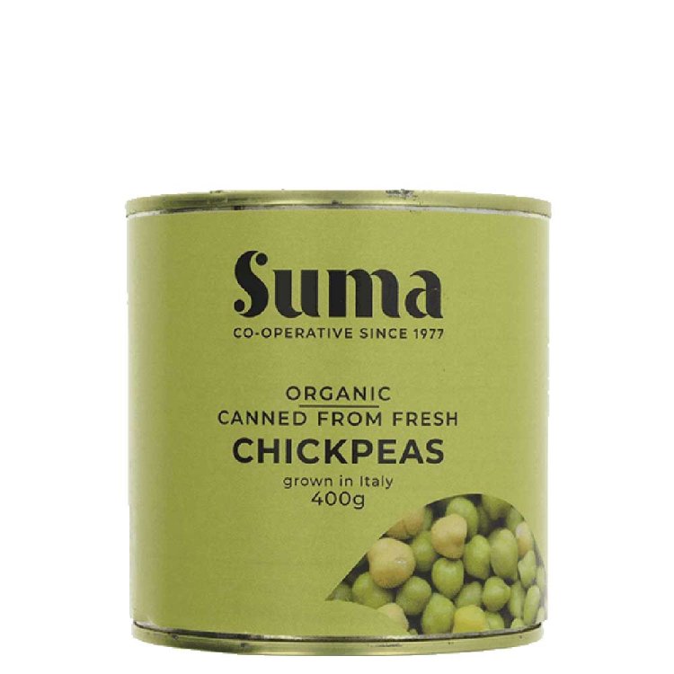 Chickpeas, the fresh way. Suma’s organic chickpeas are grown in Northern Italy, harvested with care, and canned within five hours to lock in freshness. With just water and sea salt added, they’re naturally nutty, full of bite, and perfect for everything from hummus to hearty stews.