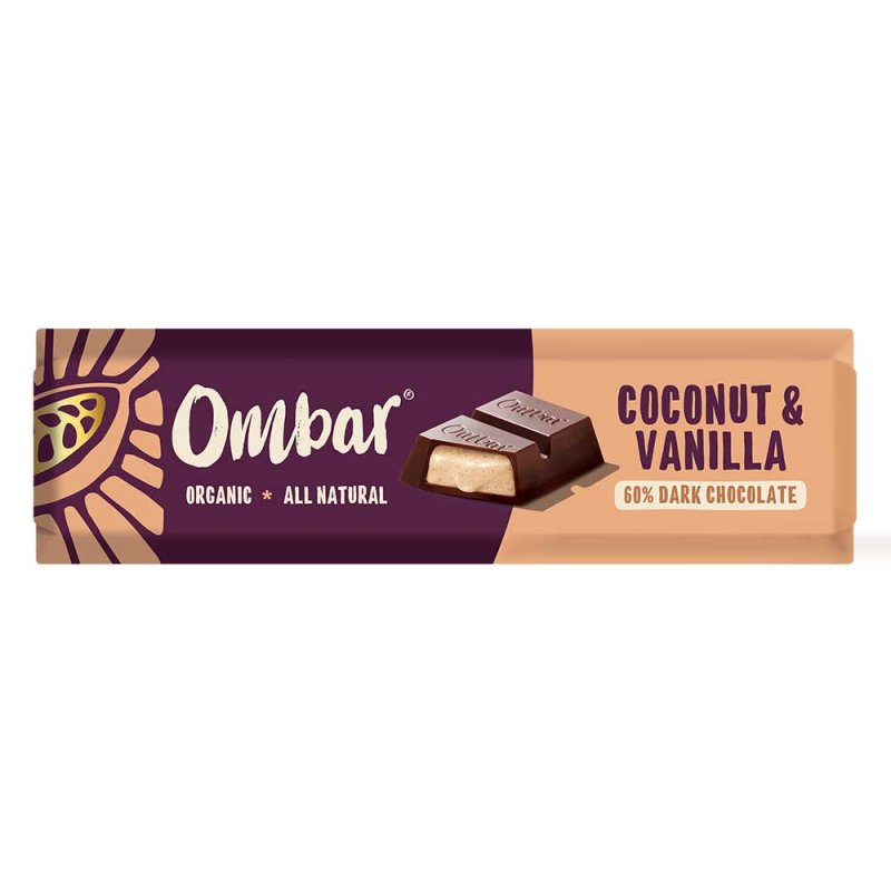 Smooth 60% dark chocolate with a luscious coconut and vanilla cream centre. Part of the indulgent Ombar Centres range, this bar balances rich cacao with sweet, tropical notes for a melt in the mouth treat. Crafted with the finest unroasted Ecuadorian cacao, it preserves the heat sensitive polyphenols, keeping the chocolate naturally nutrient rich and full of flavour.