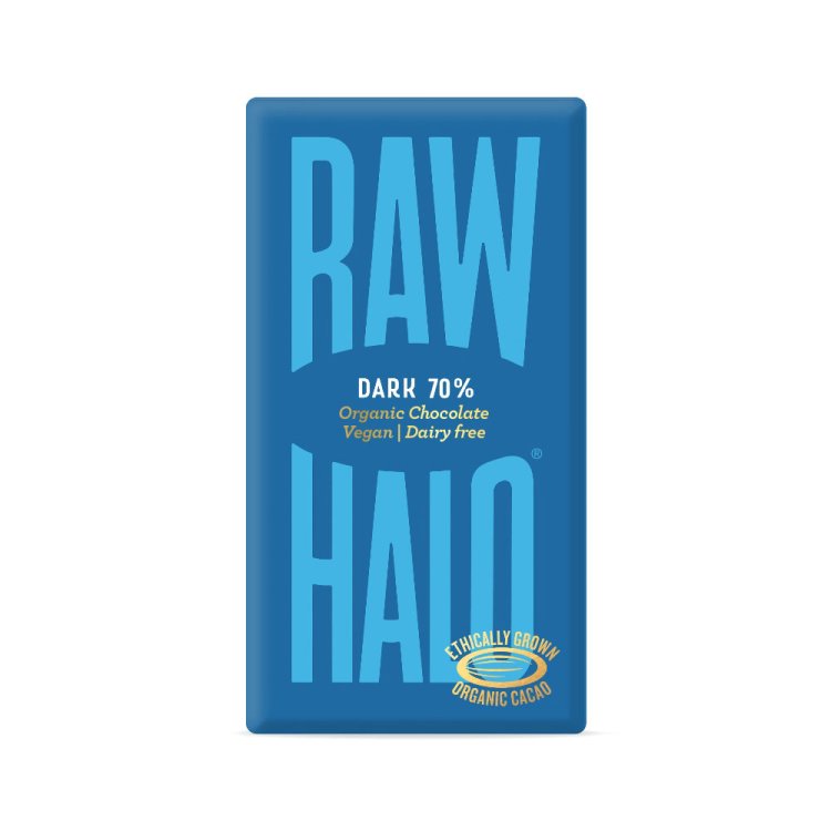 Raw Halo Dark 70% For a truly satisfying treat, look no further than Raw Halo’s Dark 70% Chocolate. Crafted with just three simple ingredients – cacao butter, cacao powder, and coconut sugar – this award-winning dark chocolate offers a pure, rich flavour that’s as good for your taste buds as it is for your soul. Made with ethically sourced, single-origin cacao, every bite delivers the deep, intense taste you crave, while making you feel good in every sense. Whether you’re in need of a quick snack or treating yourself to something special, this bar is perfectly sized for when you're on the move. Simple, organic, and full of flavour – it’s a little moment of indulgence, anytime, anywhere.