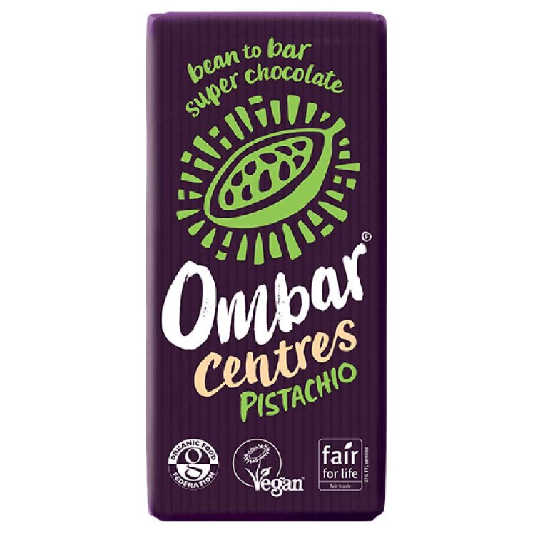 Rich and creamy 60% dark chocolate filled with a delicate, nutty pistachio centre. Part of Ombar’s indulgent Centres range, it is crafted with fine flavoured unroasted Ecuadorian cacao for a smooth, melt in the mouth experience. By keeping the cacao unroasted, Ombar preserves the delicate polyphenols, the natural plant compounds that keep chocolate nutrient rich and full of flavour. Certified organic, vegan and Fairtrade, this bar is pure indulgence made with care