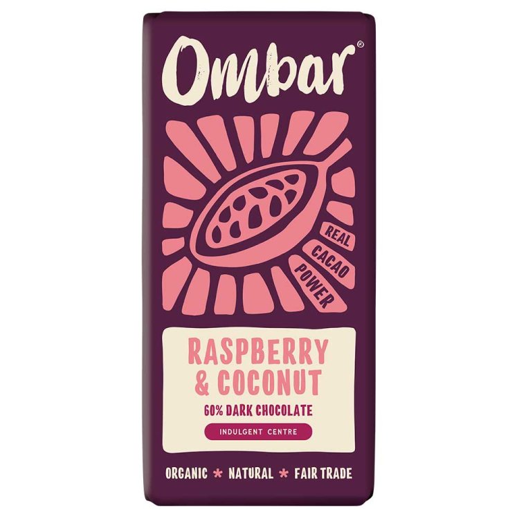 Rich and creamy 60% dark chocolate meets a zingy raspberry centre in this indulgent bar from Ombar’s Centres range. Crafted with fine flavoured unroasted Ecuadorian cacao and silky coconut, it strikes the perfect balance of tart, sweet and smooth. By keeping the cacao unroasted, Ombar preserves the delicate polyphenols, the natural plant compounds that make chocolate nutrient rich and full of flavour. Certified organic, vegan and Fairtrade, it is chocolate as nature intended
