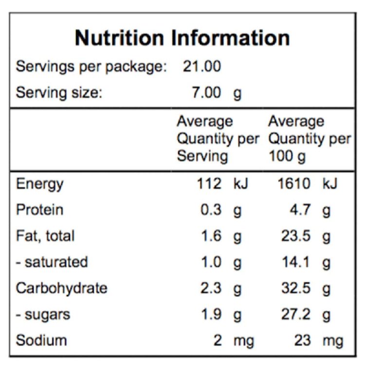 | Fibre | 0g |