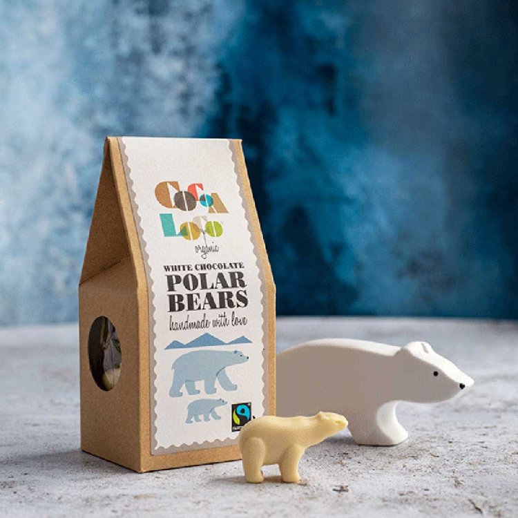 Adorably cute and deliciously creamy, these organic white chocolate polar bears are as irresistible as they are indulgent. The perfect Fairtrade gift for any white chocolate lover. Handmade with love in Sussex, they are organic, Fairtrade certified and palm oil free. A festive treat that is almost too sweet to share.