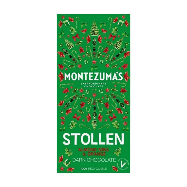 A festive classic with a chocolate twist. Montezuma’s Dark Stollen Bar brings together rich dark chocolate with the warmth of traditional stollen flavours. Inside, you’ll find nibbed almonds for a satisfying crunch, tangy orange peel pieces, and a hint of sweet almond and orange oil for that unmistakable Christmas taste. Smooth, indulgent and spiced just right, it’s the perfect seasonal treat to enjoy with a hot drink, gift to a friend, or keep on hand for when the celebrations call for something special. Vegan and gluten free.