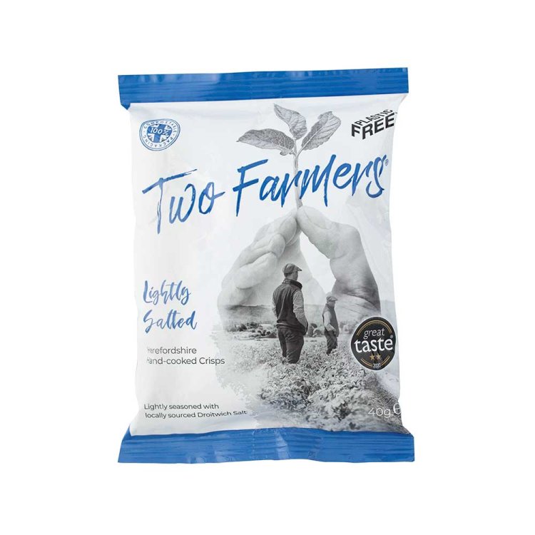 Made from award-winning potatoes grown on their farm in Herefordshire, these crisps are hand-cooked in small batches for that perfect, crunchy bite. Seasoned with hand-harvested Droitwich Salt, these crisps offer a subtle, satisfying taste that’s not too overpowering. The salt is crystallised using renewable energy, reflecting Two Farmers' commitment to sustainability. And with 100% compostable packaging, these crisps are kind to the planet too, breaking down in home composting environments in just 26 weeks. The ingredients are simple and locally sourced, with potatoes from their own farm and a touch of rosemary extract for that extra crunch. Suitable for both vegans and gluten-free diets, these crisps are a snack you can feel good about. Whether you’re relaxing at home or sharing with friends, Two Farmers Lightly Salted Crisps bring a taste of Herefordshire right to your snack time.