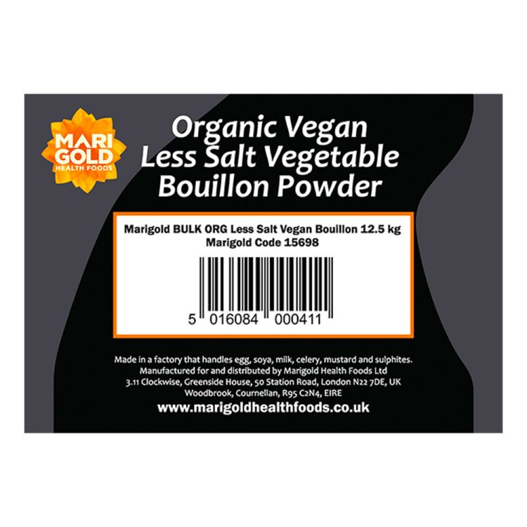 This Organic Reduced Salt Vegetable Bouillon is the perfect vegan-friendly stock powder, ideal for enhancing soups, stews, and sauces. With less salt but full of rich flavour, it’s made with natural ingredients and contains particulates. Gluten-free and completely organic, it’s a versatile, savoury choice for every kitchen.