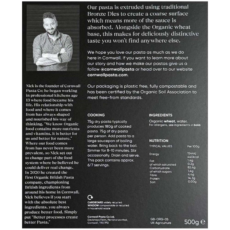 The best of British, MACARONI shaped pasta MADE IN CORNWALL using the very best organic flours and grains.