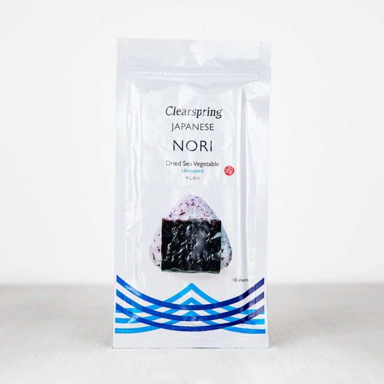 Pure, premium and full of flavour. Clearspring Japanese Nori, or hoshi nori, is high-grade seaweed traditionally used for sushi, snacks and garnishes. These deep purple sheets transform into a vibrant green when lightly toasted over a gas flame or electric burner. Once toasted, they can be used whole to wrap sushi or torn into strips to top noodles, soups, salads or grain bowls. Unlike lower-grade nori, which can appear dull and uneven, Clearspring Nori has a fine, even texture and translucent deep-green sheen, a true sign of its exceptional quality.