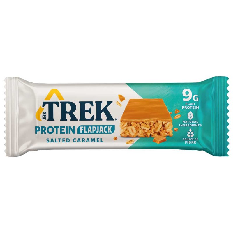 Salted caramel. Serious stamina. This is no ordinary flapjack. TREK’s Salted Caramel Protein Flapjack blends 8g of plant-based protein with gluten-free oats for slow-release energy that lasts. Made with 100% natural ingredients, it balances sweet caramel and a dash of sea salt in every soft, chewy bite. With soya protein crunchies for texture and big dessert flavour, it’s your go-to fuel when taste and performance matter.