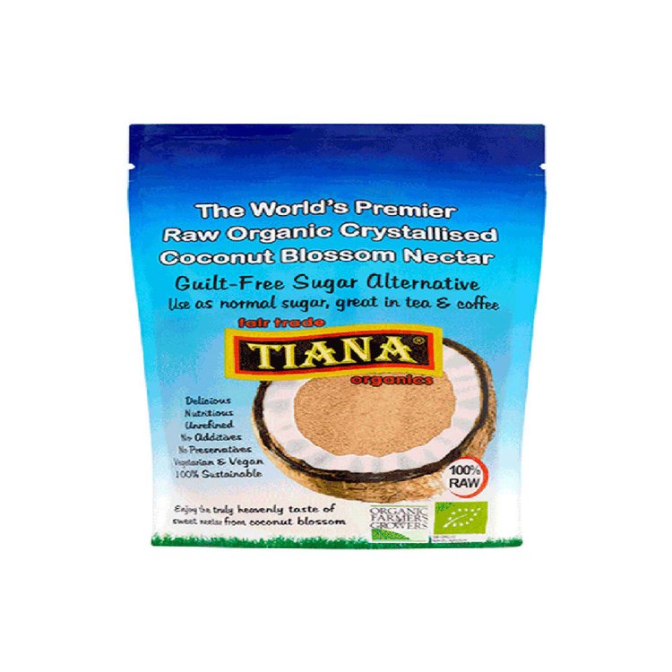 Light, golden, and naturally better. TIANA® Fairtrade Organic Raw Crystallised Coconut Blossom Nectar is a pure, unrefined sweetener made from freshly granulated coconut blossom nectar – not to be confused with coconut sugar. With just 2% fructose and a low glycaemic index of 35, it's a smart choice for those on restrictive sugar diets. Free from GMOs, preservatives and additives, these light golden crystals offer a rich nutritional profile and a clean, delicate sweetness. Vegan Society Approved and sustainably sourced, it’s a superior alternative to cane, beet, or even coconut sugar. Sweetness that stays closer to nature – and to the blossom it came from.