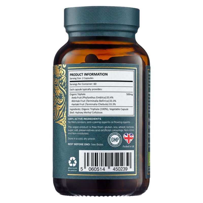 Ancient wisdom for modern wellbeing. Ayurvediq Wellness Organic Triphala is a vegan-friendly blend of three powerful fruits – amla, bibhitaki and haritaki – used in Ayurvedic tradition for over a thousand years. Rich in antioxidants and anti-inflammatory compounds, Triphala may help support digestion, reduce joint inflammation, promote oral health and aid in weight management. A gentle daily supplement to help keep the body balanced and the gut happy. Certified organic by the Soil Association and manufactured to GMP standards. 120 pure vegan capsules with no fillers, binders or additives – just plant-based wellness, the way nature intended.