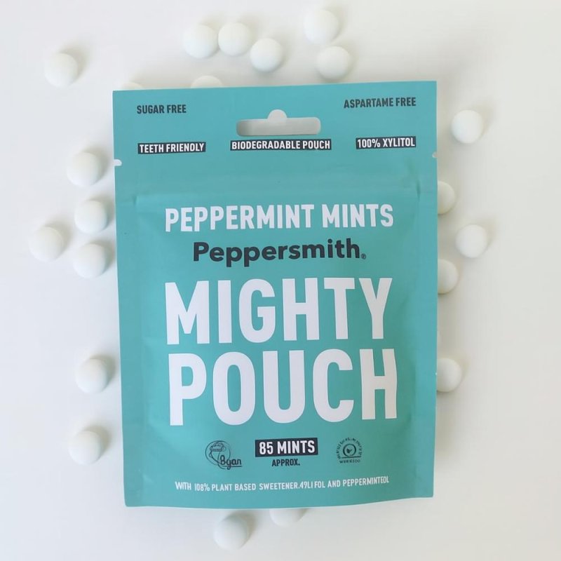 Big, bold and brilliantly refreshing, this Mighty Pouch is Peppersmith’s most popular pack, with 85 peppermint mints in every resealable pouch. Perfect for long car journeys, travel bags or keeping on your desk, they are a fresh pick me up whenever you need it. Made with the finest British peppermint grown in Hampshire, these award winning mints are sweetened with 100% xylitol, making them sugar free and kind to teeth. Bronze winners in the 2024 Veggie Awards ‘On the Go Snacks’ category, they are freshening done properly.