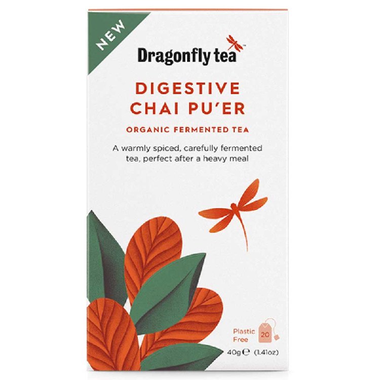 Organic Digestive Chai Pu'er Tea Bags Dragonfly Tea 20bgs