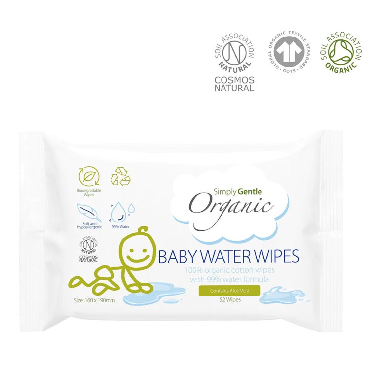 Introducing the revolutionary Simply Gentle Organic Baby Water Wipes, the perfect combination of soft, organic cotton and pure water. The essence of traditional cotton wool and water in a convenient wipe format, providing a gentle and effective cleansing solution for your baby's delicate skin. hypoallergenic, biodegradable, compostable, and packaged in recyclable materials, making them a sustainable choice for the environment. Free from harsh chemicals such as petrochemicals, alcohol, chlorine, parabens, and SLS, our wipes are gentle enough for even the most sensitive skin.