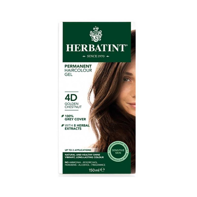 Herbatint permanent herbal hair colour in Golden Chestnut. Up to two applications per pack. Product has twelve-month shelf life after opening as denoted by jar open symbol on packaging.