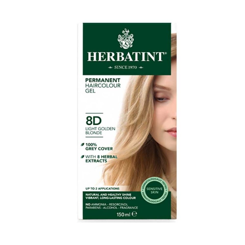 Herbatint permanent herbal hair colour in Light Golden Blonde. Up to two applications per pack. Product has twelve-month shelf life after opening as denoted by jar open symbol on packaging.