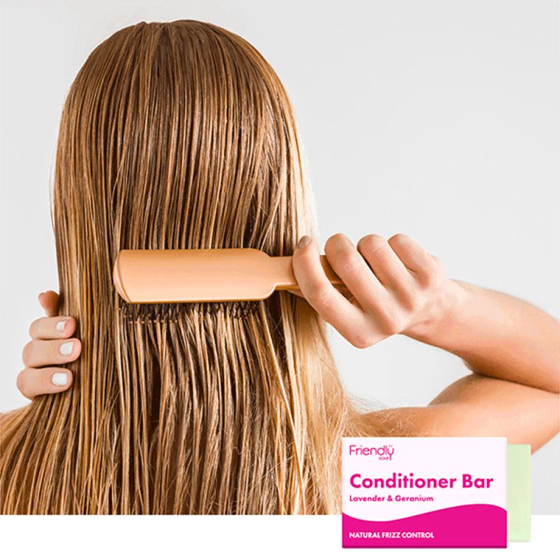 Made with a natural conditioner bar is made from a blend of pure cocoa butter and castor oil which will leave your hair looking and feeling fabulous, while keeping the frizz at bay. Infused with the calming and anti-bacterial properties of lavender and rose geranium essential oils, eco-friendly conditioner bars are designed to enhance your hair's natural beauty.