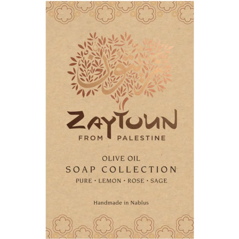 This soap is hand-crafted in small batches by a family business in Nablus, using time-honoured traditional methods. Soap from Nablus has long been celebrated for its gentle, moisturising effect. Rich in olive oil, this is a nourishing choice for everyday use, restoring the skin’s natural softness. Minimum 77% olive oil. This pack contains: 1 x 100g Pure Olive oil Soap 1 x 100g Rose Olive Oil Soap 1 x 100g Lemon Olive Oil Soap 1 x 100g Sage Olive Oil Soap, A perfect gift for any occasion.