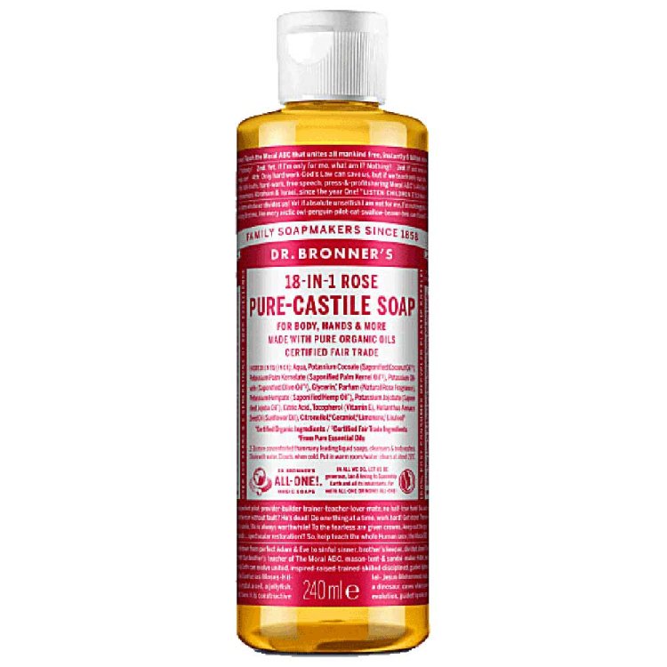 Floral, fresh, and beautifully balanced. Dr Bronner’s Organic Rose Liquid Soap blends the gentle scent of blooming roses with a touch of natural sweetness. It’s soft, soothing, and made to bring a little calm to every clean. This concentrated, biodegradable Castile soap is crafted with organic and certified fair trade ingredients and comes in a 100% recycled bottle. With 18 uses in one, it’s ready for everything—from your skincare routine to household chores. Gentle scent. Mighty multitasker. All good.