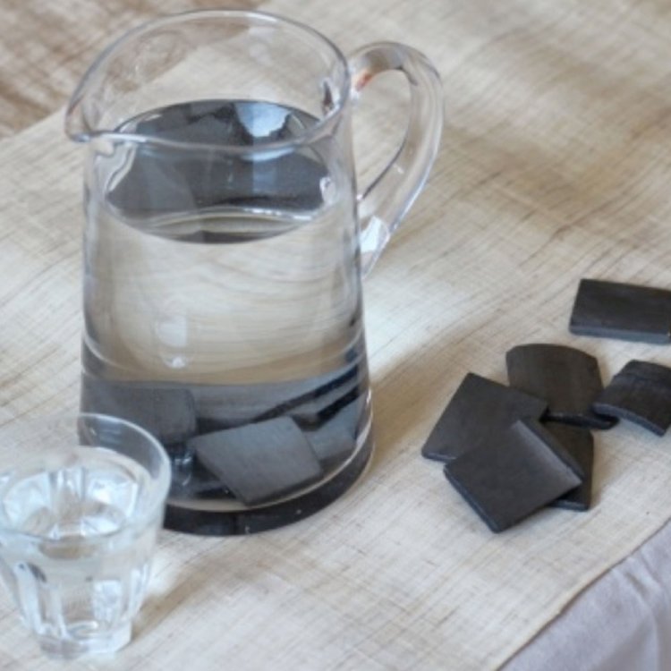 Biodegradable bamboo charcoal water filters. Reusable, then compostable and zero waste. Suitable for a 1 litre jug of water. A pack of 4, in a reusable natural cotton bag. Use approx: 1 litre jug = 3 - 4 pieces; 2 litre jug = 6 - 8 pieces. Boil for 10 mins in a pan of water to sterilise & allow to cool and dry, Place in a jug and fill with tap water (charcoal may float when new but it will tend to sink after a week or so of use). Leave for 8 hours or more for best results. You can leave it in the fridge to chill if you like. It's then ready to drink. Re-sterilise once a week. Replace with new charcoal after 2 months approx.