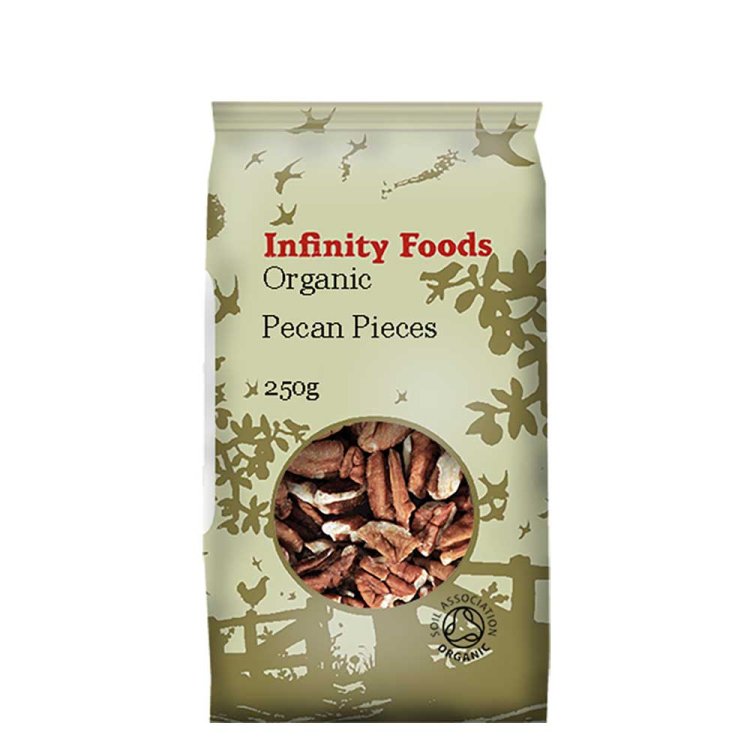 Organic Pecan Pieces. Sweet, mellow, and gently crunchy – these organic pecan pieces are as versatile as they are moreish. Grown without synthetic chemicals or fertilisers, they’re a tasty way to add richness to your recipes. Sprinkle them over porridge, mix into bakes, or toss into a salad for a buttery crunch. They’re also great in granola or just as they are for a quick snack. No shell, no fuss – just naturally delicious pecans, ready to go.
