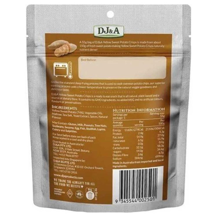Ingredients: Yellow Sweet Potato (74%), Vegetable Oils, Maltose, Sea Salt, Yeast Extract, Spices, Natural Flavour