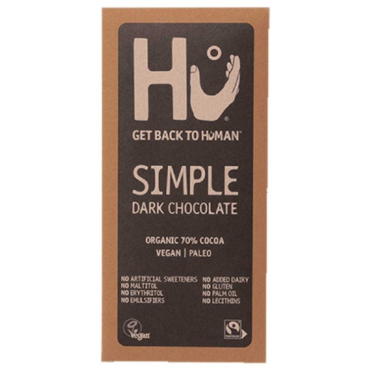 The original Hu creation. Pure dark chocolate made simply with three organic ingredients and Fairtrade certified cacao. Smooth, rich and timeless.