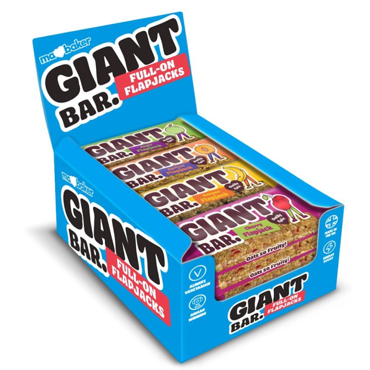 This selection of Giant Bar is bursting with apples, apricots,bananas and cherries– all wrapped up in a soft, golden flapjack base. It’s naturally sweet, satisfyingly chewy, and makes a tasty break-time treat or on-the-go bite. If you like your snacks full of fruit and easy to eat, this one ticks all the boxes.