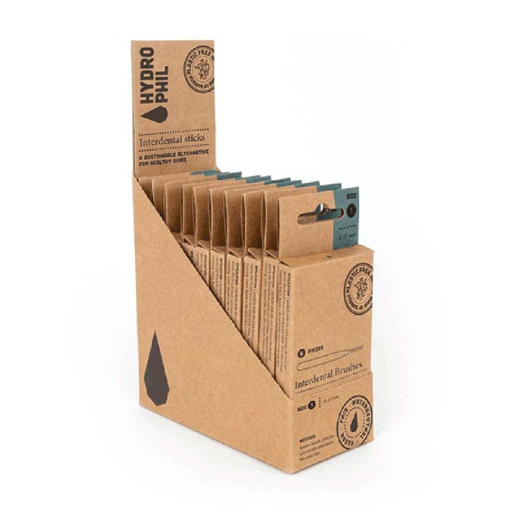 Sustainable bamboo Interdental Brush, different sizes. Size 0 – 0.40 mm // Size 1 – 0.45 mm // Size 2 – 0.50 mm // Size 3 - large – 0.60 mm Hydrophil Interdental Brushes feature a plastic-free bamboo handle, and are an environmentally friendly complement to your daily dental care. They help you to clean the hard-to-get-at spaces between your teeth. You can choose from a selection of four ISO standard sizes. Size 0 has the smallest bristles, at 0.40 mm. Using the Interdental Brush together with a Bamboo Toothbrush means you not only protect your teeth and gums, but at the same time you protect the environment. Like all Hydrophil products, the Interdental Brushes are, of course, water-neutral, vegan and fair trade. How to use: Push the Interdental Brush carefully into the space between two teeth. Move the brush horizontally back and forth a few times as well as diagonally in an 'X' movement alongside the teeth. Do this carefully. Always use the Interdental Brush without toothpaste, and preferably daily before brushing your teeth. Clean the brush under running water. You should replace the brush after 7 to 14 days. Disposal After use, the HYDROPHIL Interdental Brushes are disposed of in the residual waste. Unfortunately, for reasons of hygiene, it is not yet possible to dispose of the bamboo handle as organic waste.